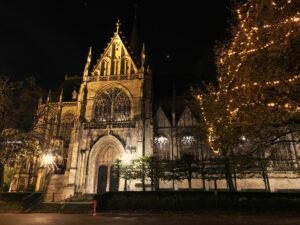 The Church of Our Lady of Sablon is a jewel of Gothic art in the centre of Brussels, in the historic Sablon district, renowned for its antique dealers, jewellers and chocolatiers . The church is open 365 days a year from 10 a.m. to 6 p.m. (Mass) and on weekends from 9 a.m. to 6 p.m. (Mass). It welcomes 500,000 visitors (free of charge) every year. One can also make a virtual visit.